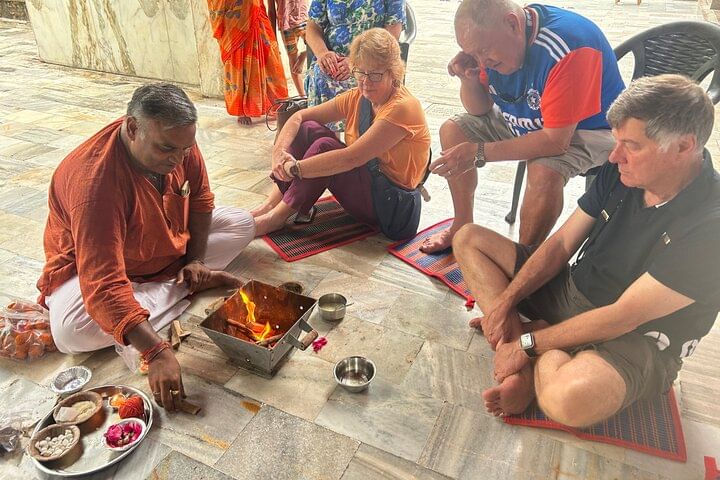 Experience the soul of India through a serene Vedic Fire Ritual (Grah Shanti Yagya) in Agra, designed to bring peace, balance, and spiritual harmony. Begin with a Tuk Tuk ride through the city’s vibrant streets to a tranquil temple or Brahmin’s home, where a priest guides you through a sacred fire ceremony. Participate in traditional offerings, chant mantras, receive blessings, and end with a calming meditation. This immersive journey offers a rare glimpse into India’s ancient spiritual heritage.