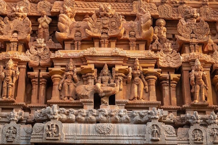 The tour continues through Kerala, covering the heritage port of Kochi, a peaceful houseboat cruise in Alappuzha, and wildlife and nature experiences in Periyar. It then moves into Tamil Nadu, featuring the sacred city of Madurai, the Chola-era architectural wonders of Thanjavur, the colonial ambience of Puducherry, and the UNESCO World Heritage monuments of Mamallapuram, before concluding in Chennai.
